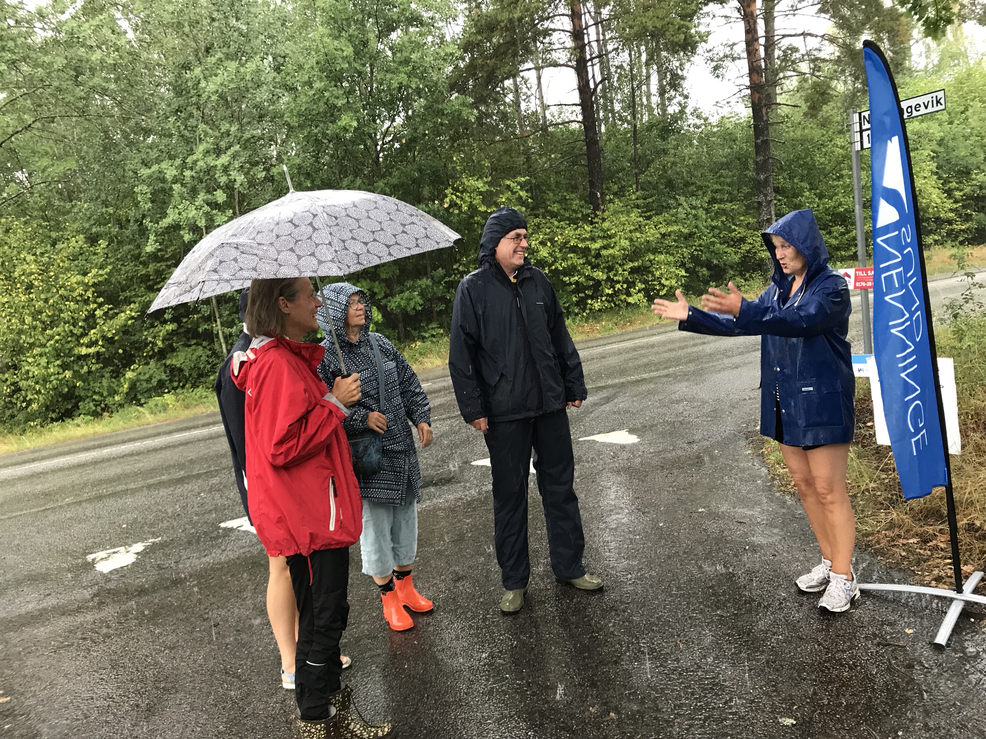 I lördags morse var vi helt inställda på att ställa in. ”Vi får väl ändå gå till samlingspunkten och se om någon kommer”, enades vi om strax före tio när regnet formligen öste ner. I backen upp mot eken vid infarten mot Nenningevik ser jag styrelsekollegan Christina vid vår Nenningesundsflagga – och så en rad bildar bakom. ”Ska de till oss, undrade vi snopna?” Det skulle de.