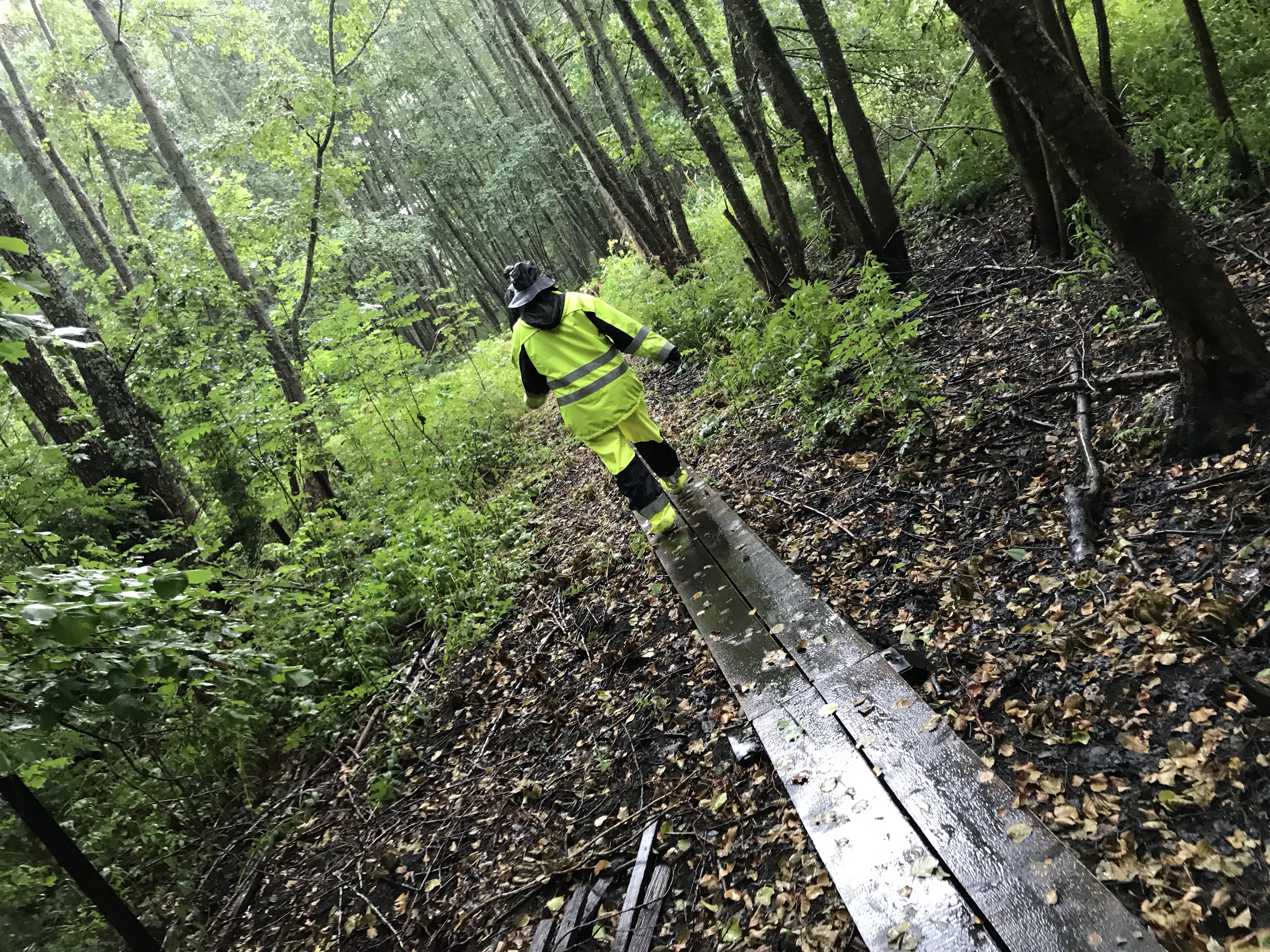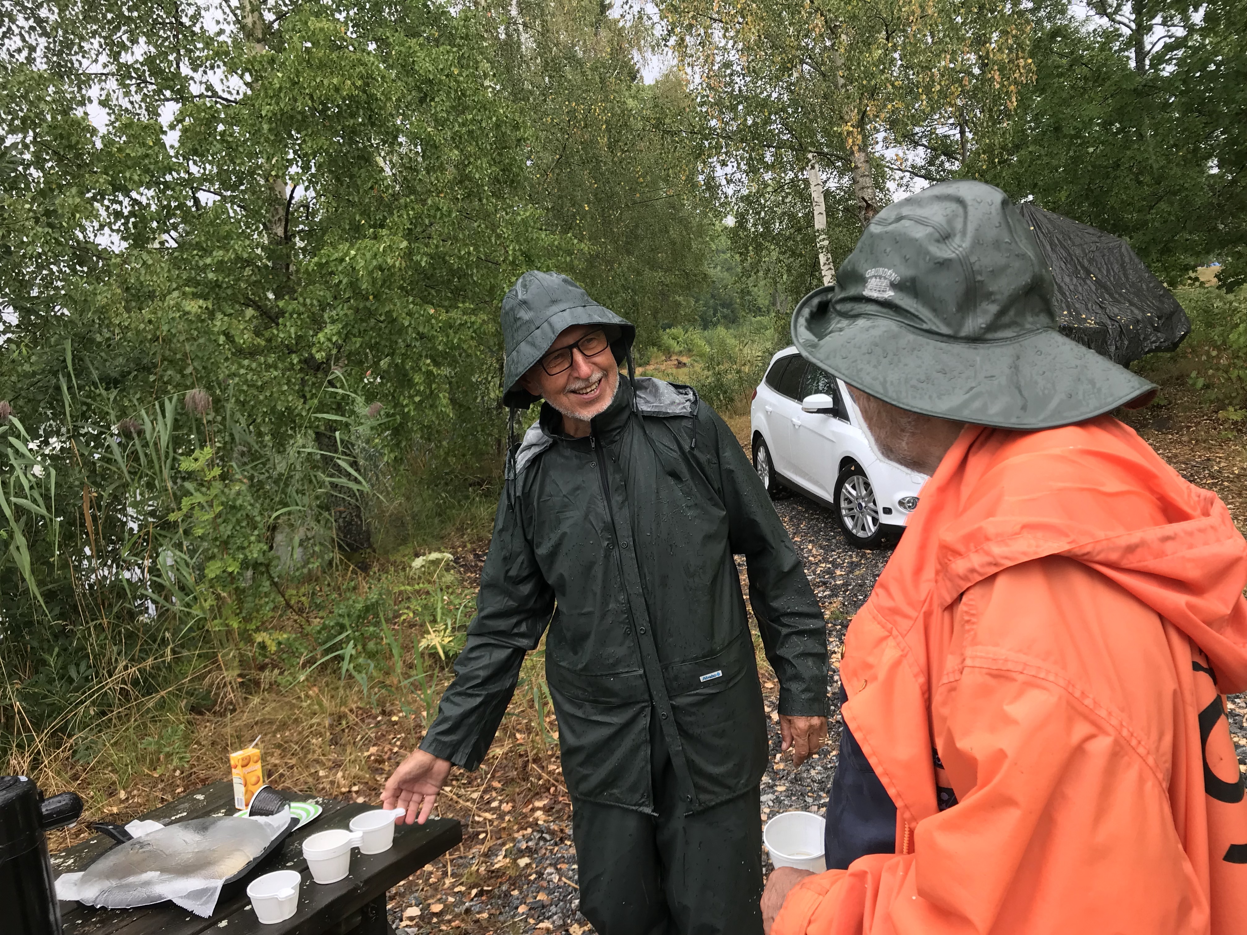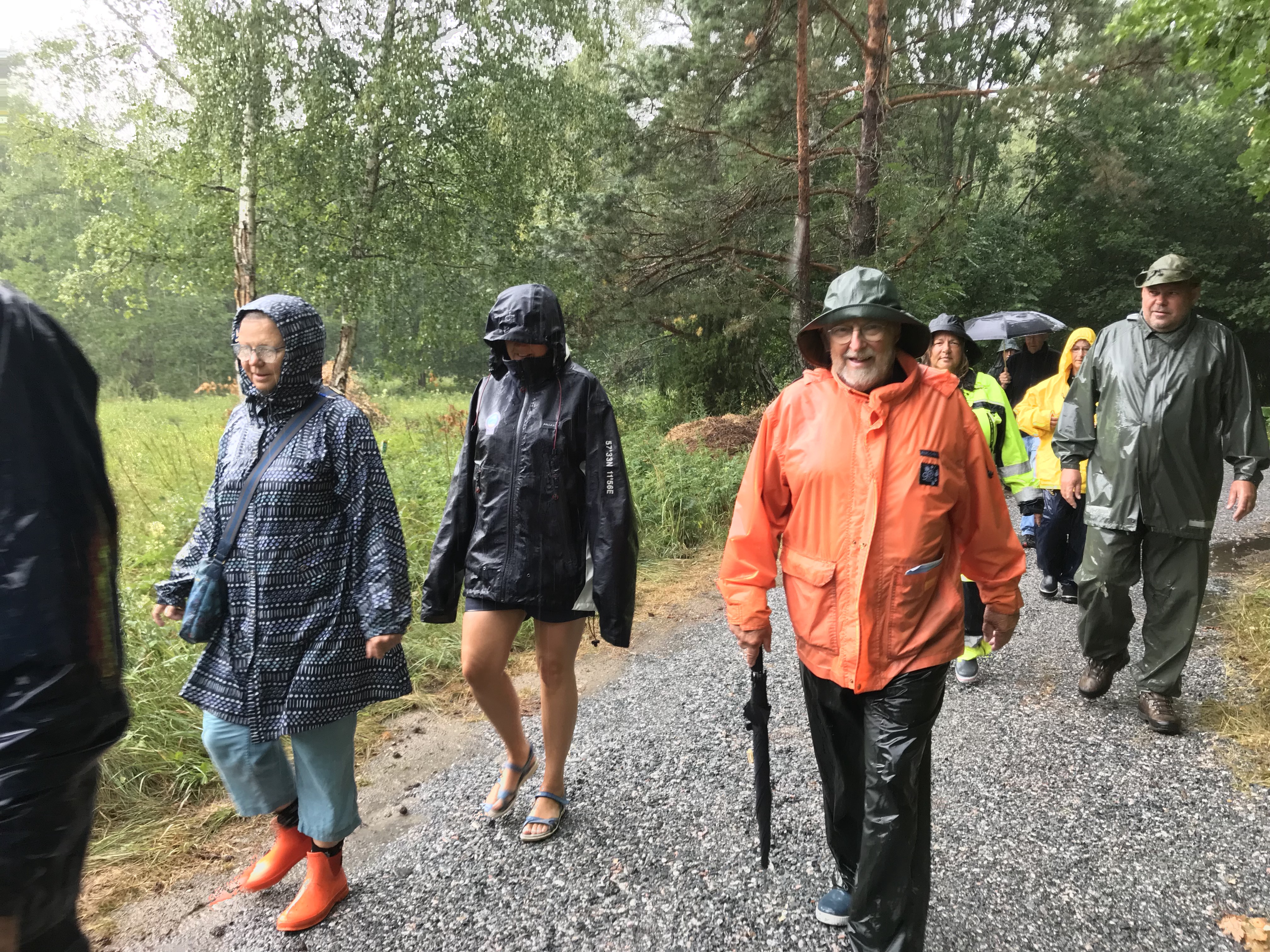 På nåt vis blev det en ännu mer lyckat vandring än vanligt, i regnkläder och under paraplyer. Vi hade ju heller ingen anledning att gnälla på vädret, eftersom vätan var så efterlängtad och vi knappast frös. Det enda som störde var att myggen vaknat till liv och ville festa på oss.